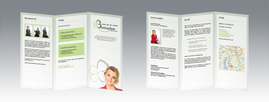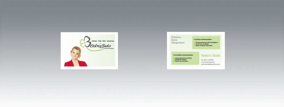 Der Auftrag war, ein in sich geschlossenes, aussagekräftiges Corporate Design für Beatrix Bodo – Business- und Einzelcoaching zu gestalten. Es umfasst eine Homepage, eine Faltbroschüre, Brief- und Rechnungsbogen sowie eine Visitenkarte.